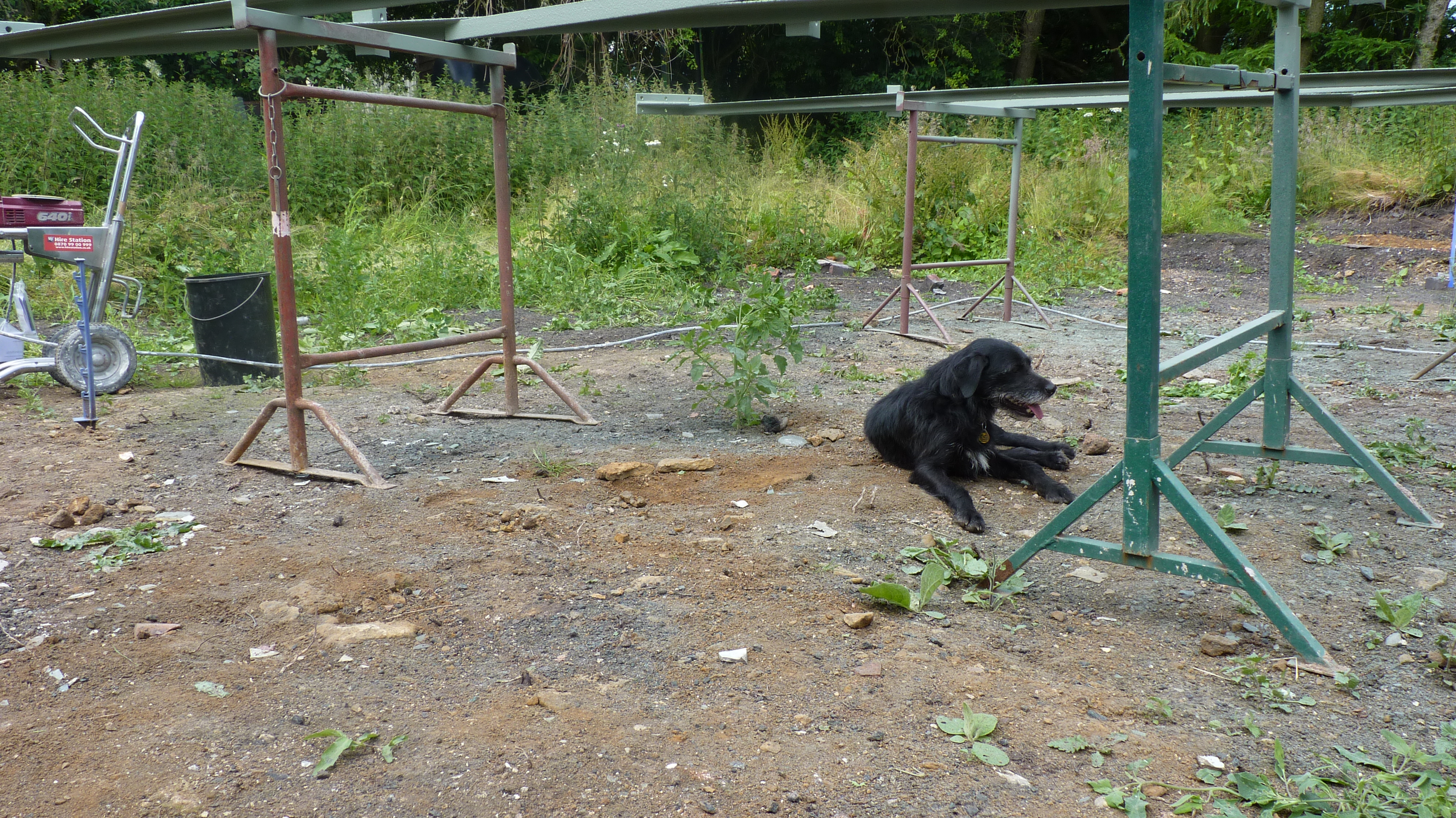 The paint was mainly applied with a hired airless sprayer which also made a hateful noise. Spencer, Dave’s accompanying dog (much less important than me) didn’t seem to mind, but didn’t help much either.