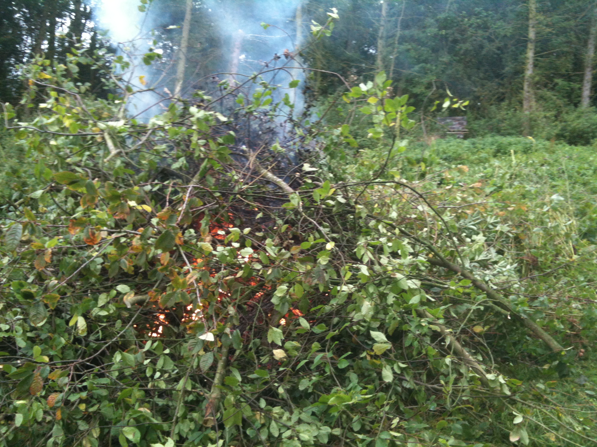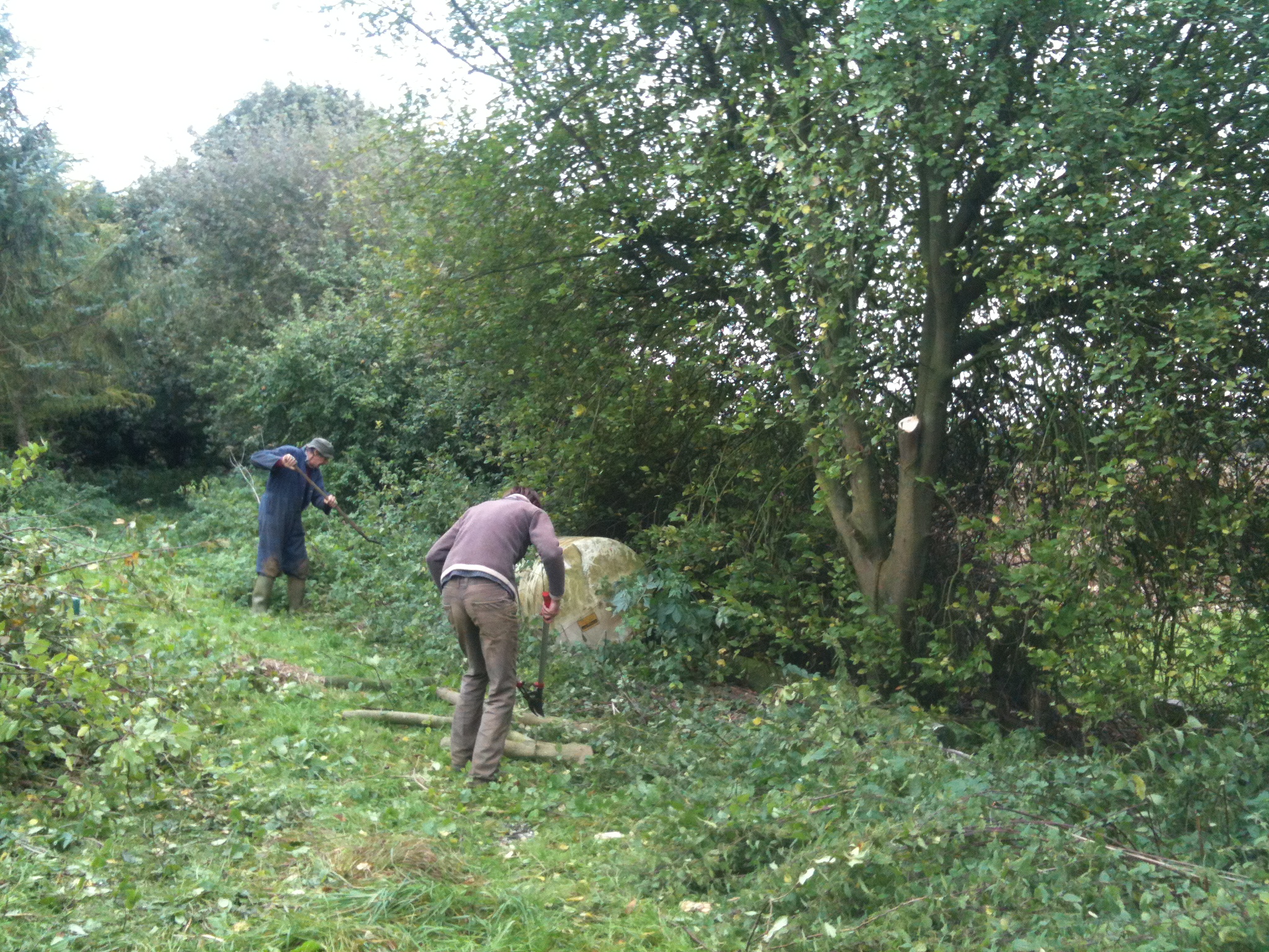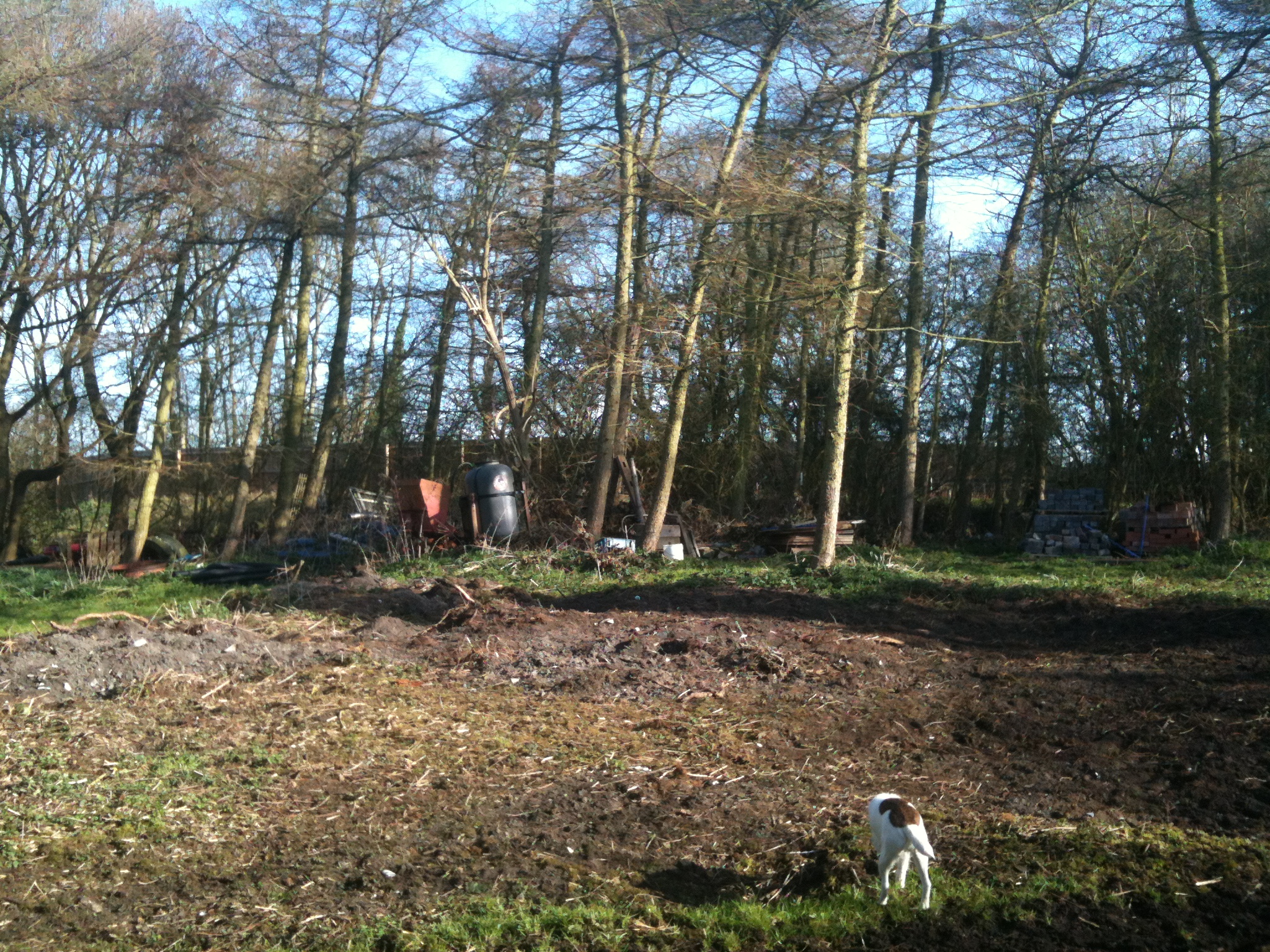 After removal of larch trees from the site in early autumn 2012 (after the bird breeding season) by Rob, Katie and Chris, the site was levelled.