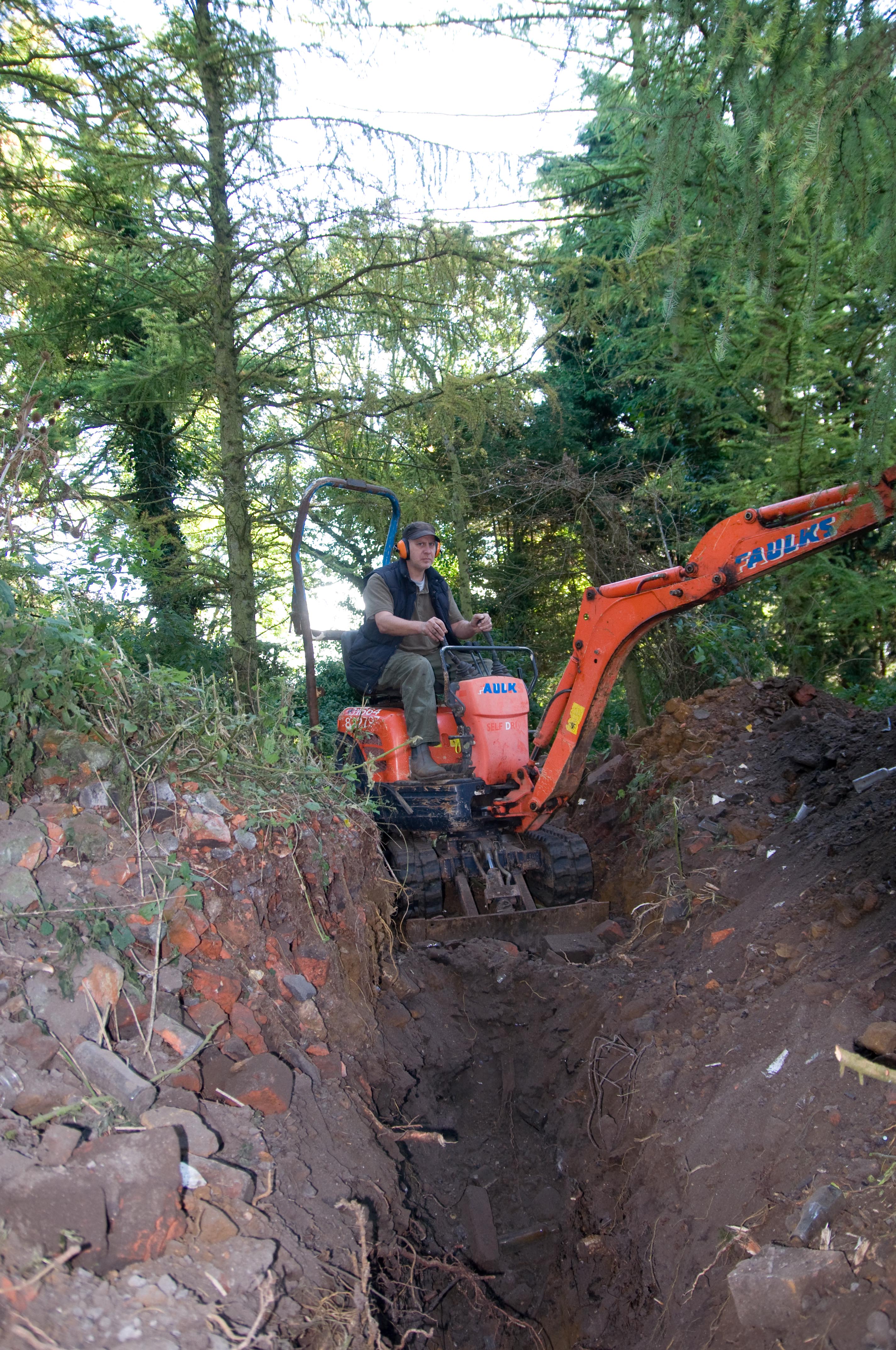 and went inside for a second breakfast. Meanwhile, Rob attempted to learn to use the myriad controls of the so-called digger. By late morning, and after quite a lot of ineffectual thrashing about, a water supply trench had been started.
